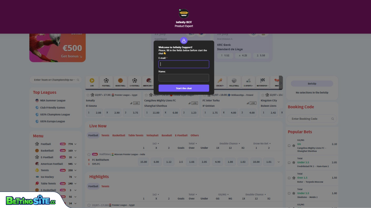 Υποστήριξη πελατών του Casino Infinity
